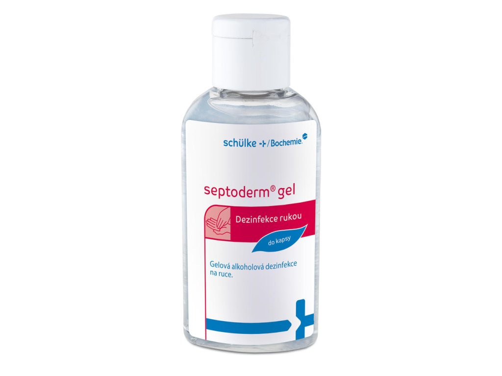 Bezoplachová alkoholová dezinfekce rukou Septoderm Gel - přenosné balení do kapsy. Vyrobeno v ČR.