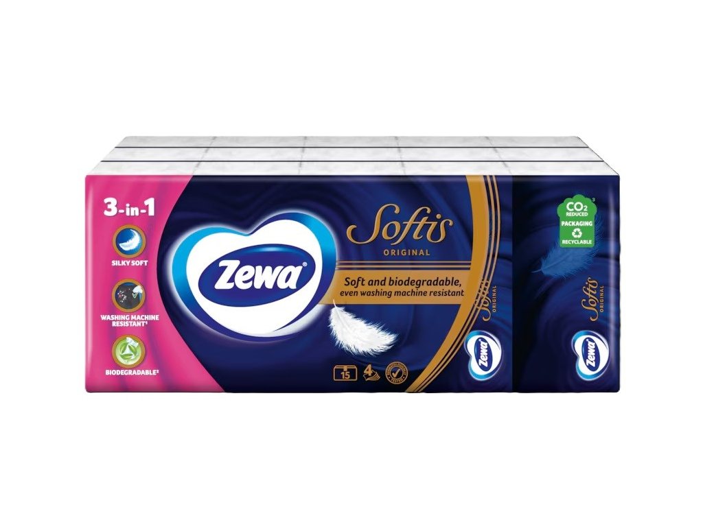 Čtyři vrstvy prémiového extra jemného papíru bez parfemace dělají z kapesníčků Zewa Softis Standard ideální volbu pro každodenní použití, ale také pro období alergií a chřipek. Potisk loga Zewa na jemném a pevném kapesníčku je zárukou naší dobře známé kvality.