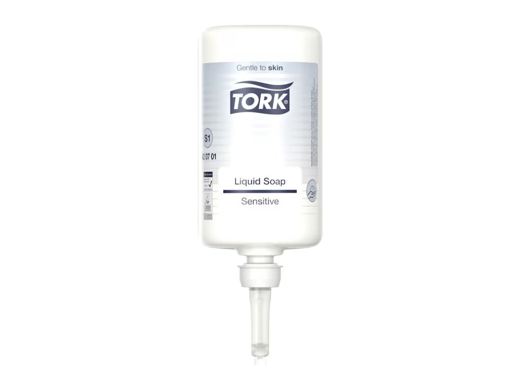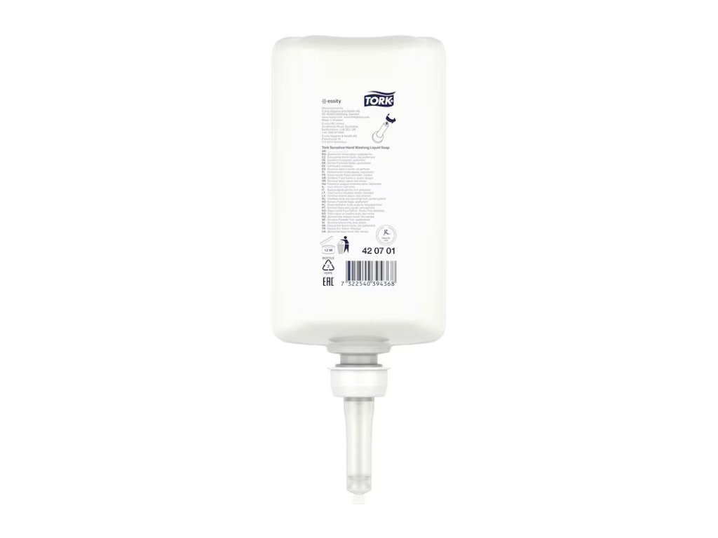 This dermatologically tested soap has nourishing ingredients, skin-friendly pH and allergy-friendly ECARF certification, meaning it moisturises the skin and is suitable for frequent use. Recommended for dirtier and soiled hands and when more cleaning power is needed, like in the kitchen (compared with Sensitive Foam Soap). Save staff time with effortless refilling – certified by the Swedish Rheumatism Association, tested according to the Design for All test, published in the Swedish Design Research Journal, 2011. Help secure good hand hygiene – the factory-sealed bottle with a new pump for every refill helps reduce the risk of contamination and protect the formulations all the way to the hands. Advantages at a glance: