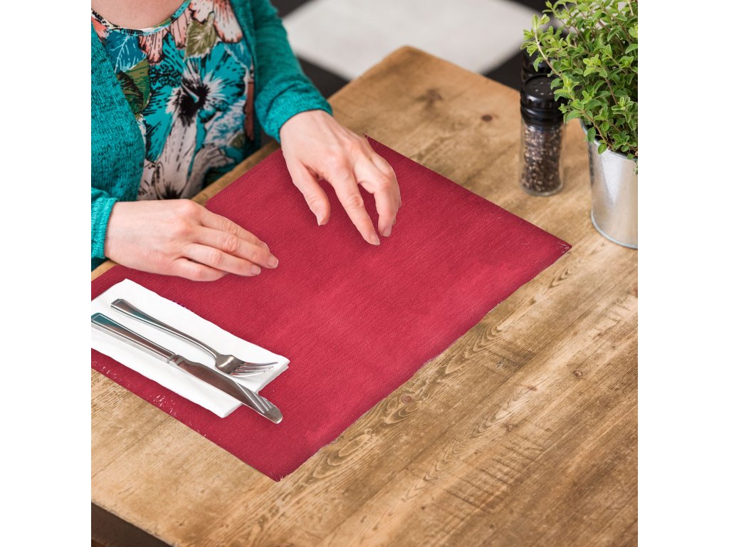 Papírové prostírání TORK bordeaux, v rozměru 30x42cm s ochranou fólií. Jednoduché a pohodlné řešení, jak zlepšit vzhled prostřeného stolu. Pro lepší hygienu při stolování. K dispozici ve 2 barvách, které skvěle doplní dekoraci jakékoli restaurace. Dodáváno v plochém balení - snadné skladování. Certifikováno pro styk s potravimi. Certifikace EU Ecolabel.