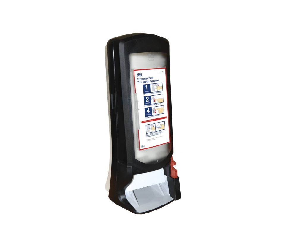 Tork Xpressnap® Drive Thru elektronický zásobník na ubrousky je ideální pro provozovny nabízející drive thru, rychlé občerstvení a doručování objednaných jídel, kapacita 1100ks ubrousků