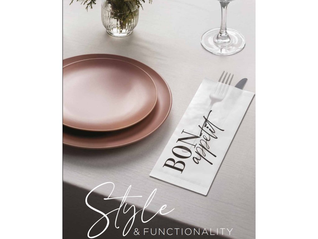Papírová kapsička na příbory Infibra Bon Appetit s bílým ubrouskem - 100ks