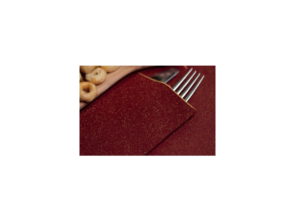 Papírová kapsička na příbory Infibra bordó s bílým ubrouskem - 125ks