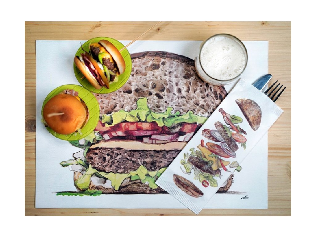 Papírová kapsička na příbory Infibra Hamburger s bílým ubrouskem - 125ks