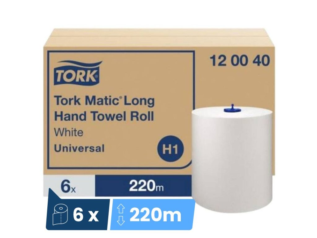 Vynikající poměr ceny a kvality se systémem Tork Matic® Universal papírové ručníky v roli H1. Ručníky mají vysokou kapacitu a jsou ideálním řešením pro vytížené umývárny např. ve školách a letištích. Vysoká kapacita - až 880 ručníků v jedné roli pro mechanické zásobníky TORK MATIC. Úspora času potřebného na údržbu. Méně častá výměna náplní a stálá zásoba papíru. Délka role 220m, o 50% více ručníků v jedné roli.
