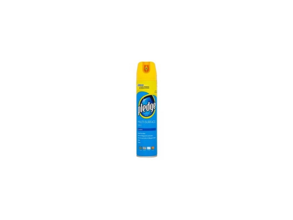 Pronto Pledge multifunkční sprej 5v1 classic 250 ml. Dokonale čistí a odstraňuje prach,šmouhy a otisky z běžných druhů povrchů jako je dřevo, plast, kov, elektronika a sklo. Nevhodný pro použití na neošetřené dřevo. Použití na starožitný nábytek konzultujte s odborníkem. Obsahuje antistatické složky, které zabraňují opětovnému usazování prachu. Obsahuje antistatické složky, které zabraňují opětovnému usazování prachu.
