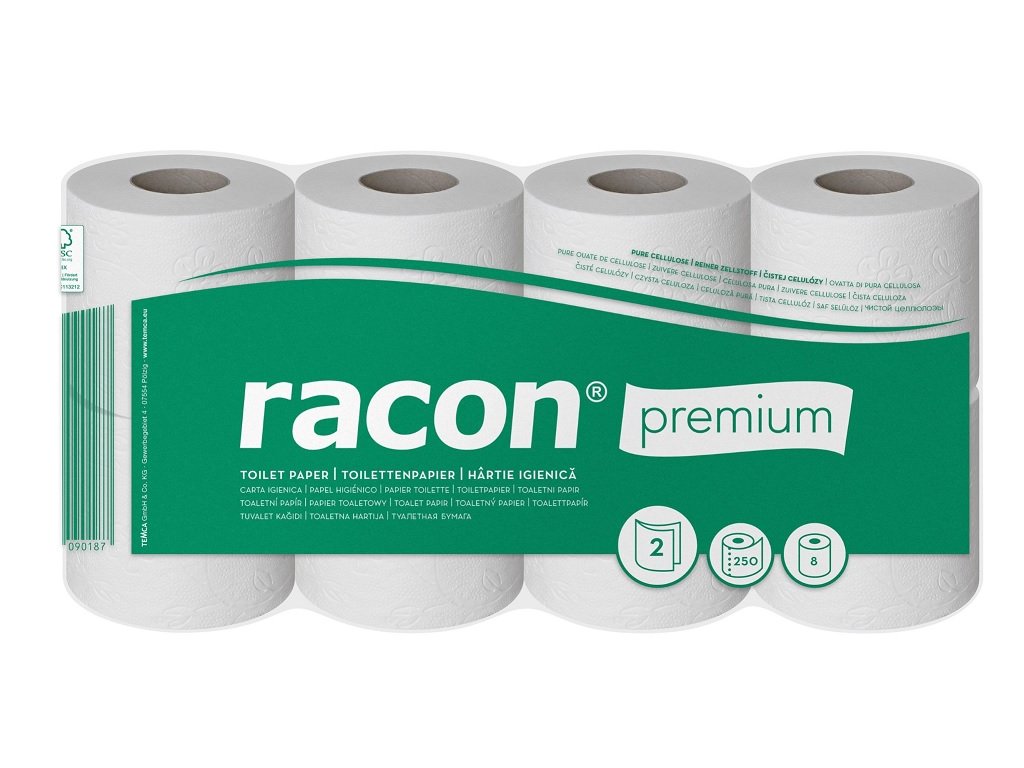 Toaletní papír Racon Premium 2vrstvy 250 útržků bílý - 8ks