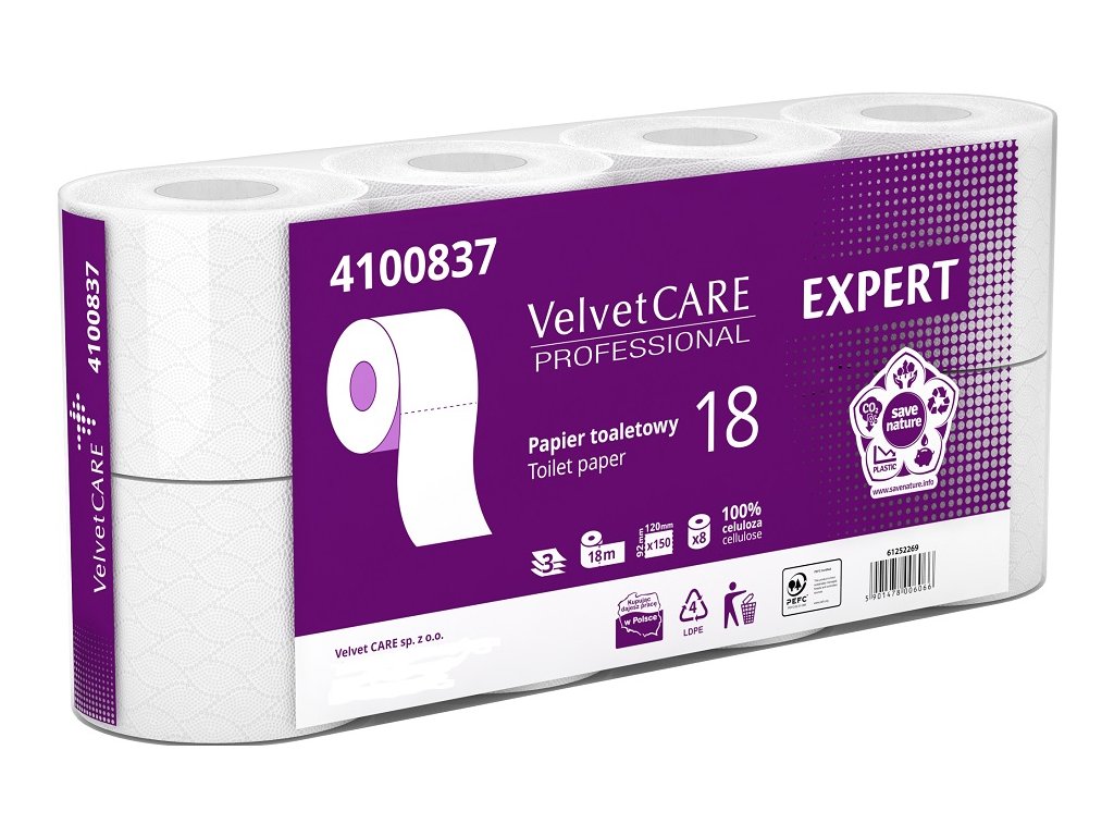 Toaletní papír VelvetCARE Professional 150 bílý 3vrstvy 18m - 8ks