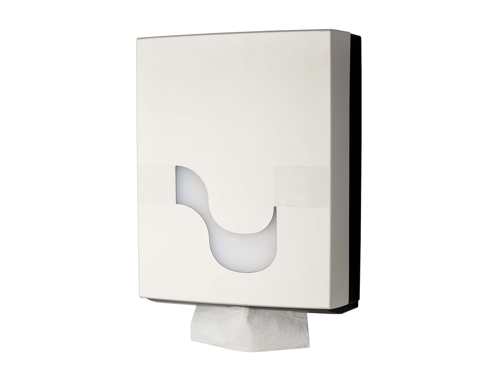 Zásobník na skládané papírové ručníky CELTEX. Jednoduchý design zásobníků CELTEX vyjadřuje jemné a neutrální tvary. Snadná montáž = správná instalace. Uzamykatelný. Snadné a rychlé doplňování náplní. Zásobníky CELTEX jsou navrženy pro prostředí veřejných toalet, kde rozhoduje cena.